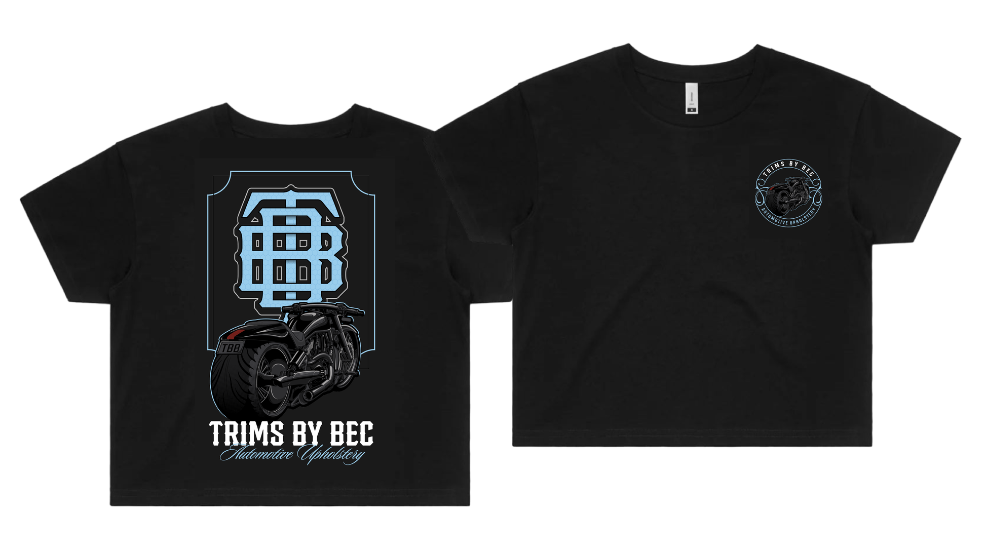 The Official Trims By Bec Women’s Crop Top, printed on premium AS Colour fabric. A fitted, flattering cut designed to sit above the waist with a clean, modern look.